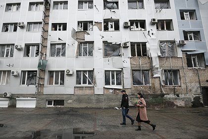 В Донецке жилой дом выгорел после попадания снаряда натовского калибра