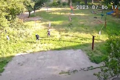 Разбегающихся с площадки после обстрела ВСУ детей в Донецке сняли на видео