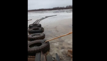 Жители поселка Карелии проложили «дорогу жизни» по тонкому льду