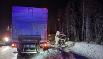 Водитель тягача обгонял рефрижератор и опрокинул машину в кювет