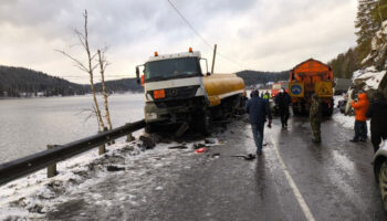 Столкновение бензовоза и МАЗа заблокировало движение на одной из трасс