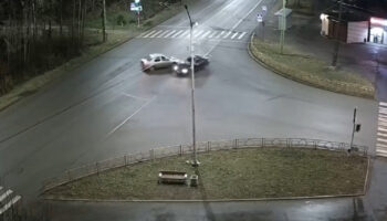 На пустынном перекрестке ночью столкнулись два автомобиля