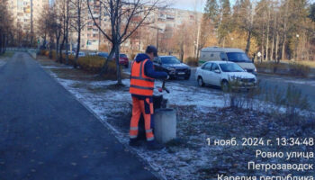 Улицы Петрозаводска обрабатывают противогололедными материалами