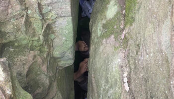 Застрявшая вниз головой между огромными валунами молодая женщина спаслась чудом