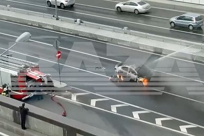В Москве автомобиль загорелся на выезде из тоннеля и попал на видео