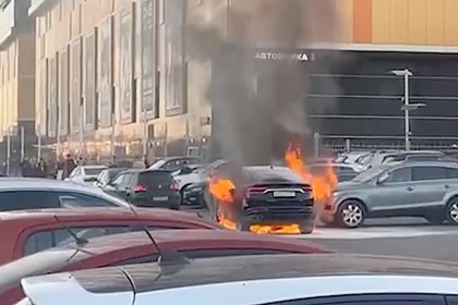 Горящий около ТЦ в Москве автомобиль попал на видео