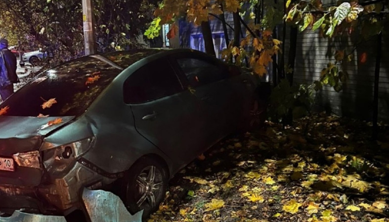 Также 28-летняя женщина-водитель автомобиля KIA не справилась с управлением и врезалась в опору уличного освещения. Ей назначили лечение. ГАИ проводит проверку. // фото пресс-службы Госавтоинспекции Петрозаводска