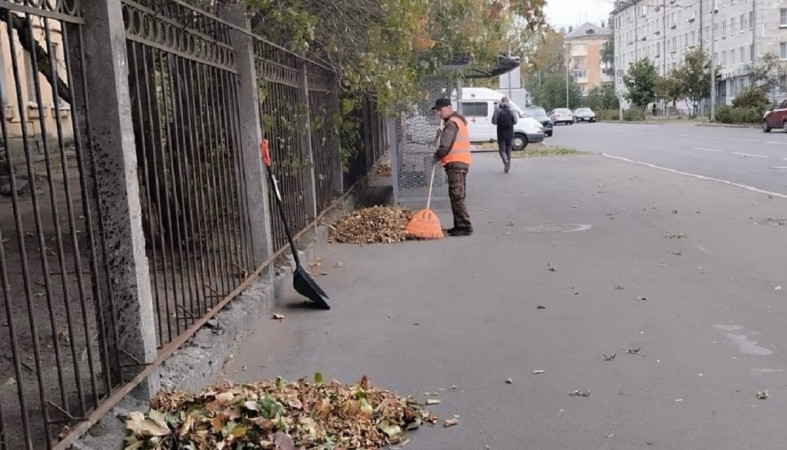 На этой неделе подрядчик вывозит листву с улиц города. В частности, сегодня специалисты работали в Соломенном и на Кукковке. Также приводятся в порядок остановочные комплексы.
