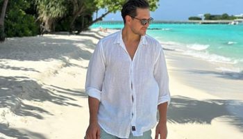 Милош Бикович поделился пляжными фото с женой и сыном