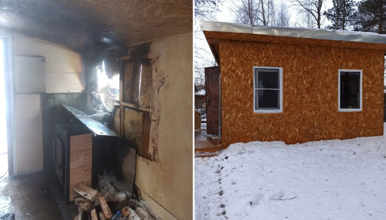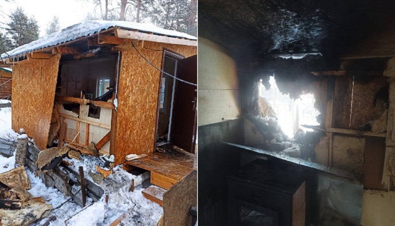Утром на севере Карелии возник пожар в постройке из OSB-плиты.