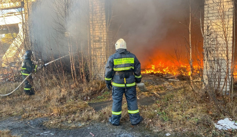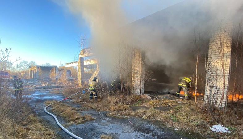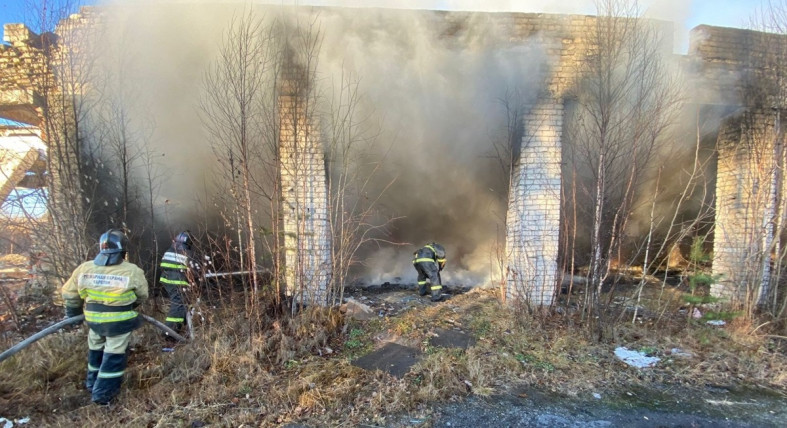 На территории бывшей военной части в Кемском районе 29 октября произошел пожар.