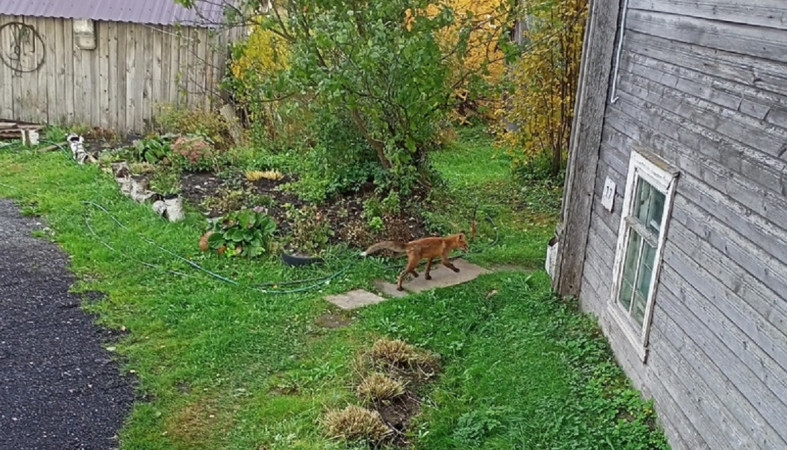Так лисы в Олонецком районе выходят к человеку в поисках пропитания. В деревне Рыпушкалицы при свете дня рыжая лисичка бегала между домов. Ее без труда снял на телефон Александр Чижов.