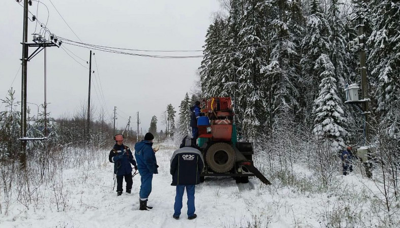 При обследовании выяснилось, что для включения остальной части потребителей необходимо устранить повреждение на участке стороннего собственника — одной из опор, присоединенной к линии «ОРЭС-Петрозаводск». Для выявления конкретного места повреждения требовалась автовышка.
