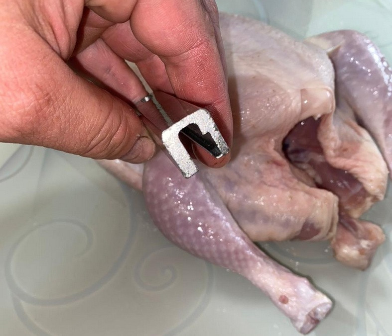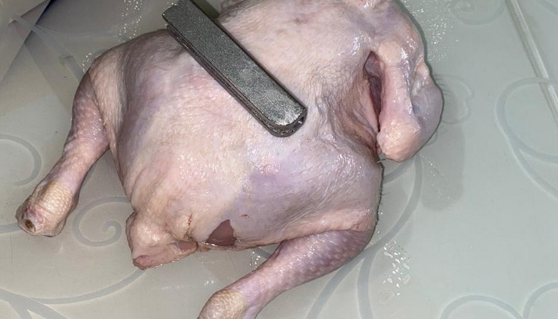 Сегежанка купила в супермаркете тушку цыпленка с большой железякой внутри